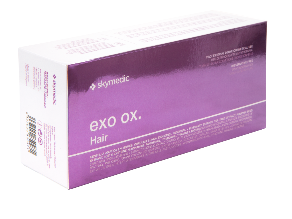 Exo Ox Hair is ontwikkeld om de haarfollikel te voeden, te versterken en opnieuw te activeren. De formule combineert een uitzonderlijk hoge concentratie plantaardige exosomen uit Centella Asiatica met Regecapil®, plantenextracten, aminozuren en vitamines. Samen vormen ze een complete aanpak voor haaruitval en verzwakt haar.